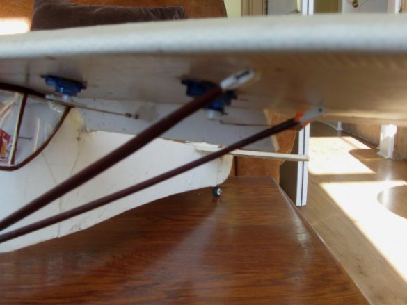 9 gram servos, control horns, linkages and adjusters supply the motion.